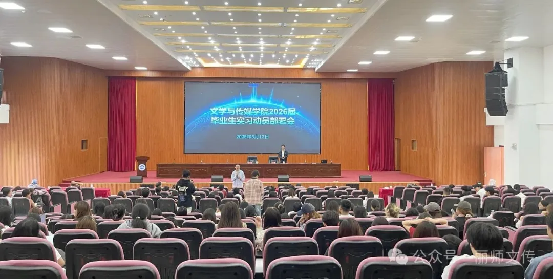 6月13日下午,文学与传媒学院在图书馆报告厅召开了“2026届毕业生实习动员部署会”。学院党总支副书记刘治中、副院长符二喜,小学语文教育专业负责人王舒寅、现代文秘专业负责人赵婷婷、新闻采编与制作专业负责人陈永,实习指导教师,全体2023级实习学生等共300余人参加了会议。会议由学院副院长符二喜主持。