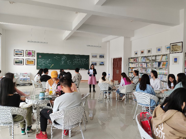 紧接着与会的同学围绕本期读书会的主题“最喜欢的作家”一一分享了自己的读书心得。第一位分享的是来自语教一班的李耀,他分享的作家是拉丁美洲魔幻现实主义文学的代表人物马尔克斯。他从《百年孤独》这本书开始讲述:“这本书是他进入大学后读的第一本书,里面的故事和情节非常吸引他。”接着,重点分析了马尔克斯魔幻现实主义的写作手法是如何悖论般地表现出一种由于对时空因素进行迥然不同的并置所致的奇异的效果。李耀列举了众多马尔克斯的代表作品:《霍乱时期的爱情》《一桩事先张扬的凶杀案》、《没有人给他写信的上校》、《枯枝败叶》。李耀同学表示:“因为喜欢,所以刻意去模仿马尔克斯强烈的叙述风格。甚至在大一的时候,写作课的期末作业就模仿马尔克斯的写作手法写了一篇小说。”第二位分享的同学是语文教育二班的张梦思,她从“因为爱上一本书从而爱上一个人”这个角度出发,分享了《云间有个小卖部》的作者张嘉佳。她说道:“要像王莺莺一样拥有乐观向上韧劲,像程霜一样即使只有最后一丝光亮,也要照亮别人”。最后,她朗读了在这本书中最喜欢的几句话来结束自己的分享:“王莺莺小气鬼,算了,王莺莺长命百岁百岁”。第三位同学是来自语教三班的颜灿。她分享了古典文学名著《红楼梦》。“似梦非梦,以朝以暮,庄周幻境,不知真假”——她以此作为开场,展现了曹雪芹似梦非梦的一生,人生如世一场大梦,人生几度秋凉。第四位同学是来自语文教育四班的黎星妍。她分享的是诗人陶渊明。她说:“在应试教育中,我认为李白是浪漫,杜甫是真实,陶渊明是淡泊名利。可真正了解之后才发现,陶渊明也是一个自信、勇敢、坚毅的人,这就是我为什么喜欢陶渊明的原因”。接着,她分享了一首陶渊明的诗,结束了此次分享。第五位同学是来自语文教育五班的李穗,海明威《老人与海》中的一句:“一个人生来并不是要被打败的,你尽可以把她消灭掉,可就是打不败他”,这是《老人与海》的开场白,也是李穗的开场白,结尾时她号召大家:“希望在座的各位好好读书,成为自己的太阳”。第六位是来自文秘班的王琼梅,她分享的是一位网红老师,也是一位作家——复旦大学教授陈果。她对陈果的人生价值观、工作、生活等方面进行了丰富的讲解,“要保持独立,勇敢追求”是王琼梅一直勉励自己的话,最后她说:“希望大家活成一束光”!