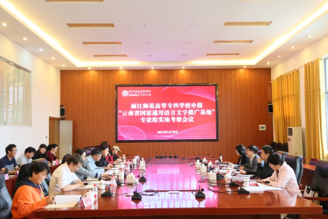 实地考察结束后,在学校第三会议室召开专家组实地考察会议。专家组全体人员、学校校长毕天云、副校长朱桂香、学校语委各成员单位负责同志及普通话测评员教师代表参加会议。专家组观看了学校宣传片,毕天云代表学校全体师生对专家组的到来表示热烈欢迎和衷心感谢。毕天云指出:语言文字是国家重要的文化资源、安全资源和战略资源。此次专家组进校实地考察,对于学校来说是一次难得的学习机会,一次难得的请教机会,更是一次提升机会。毕天云介绍了学校发展历史沿革、学校学院专业设置、师资储备,全体丽师人正全力以赴为升格为本科师范院校“丽江师范学院”而努力奋斗。