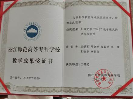 近日,我院“外国文学‘3+2’教学模式的建构与实践”获学校2020年校级教学成果奖二等奖。