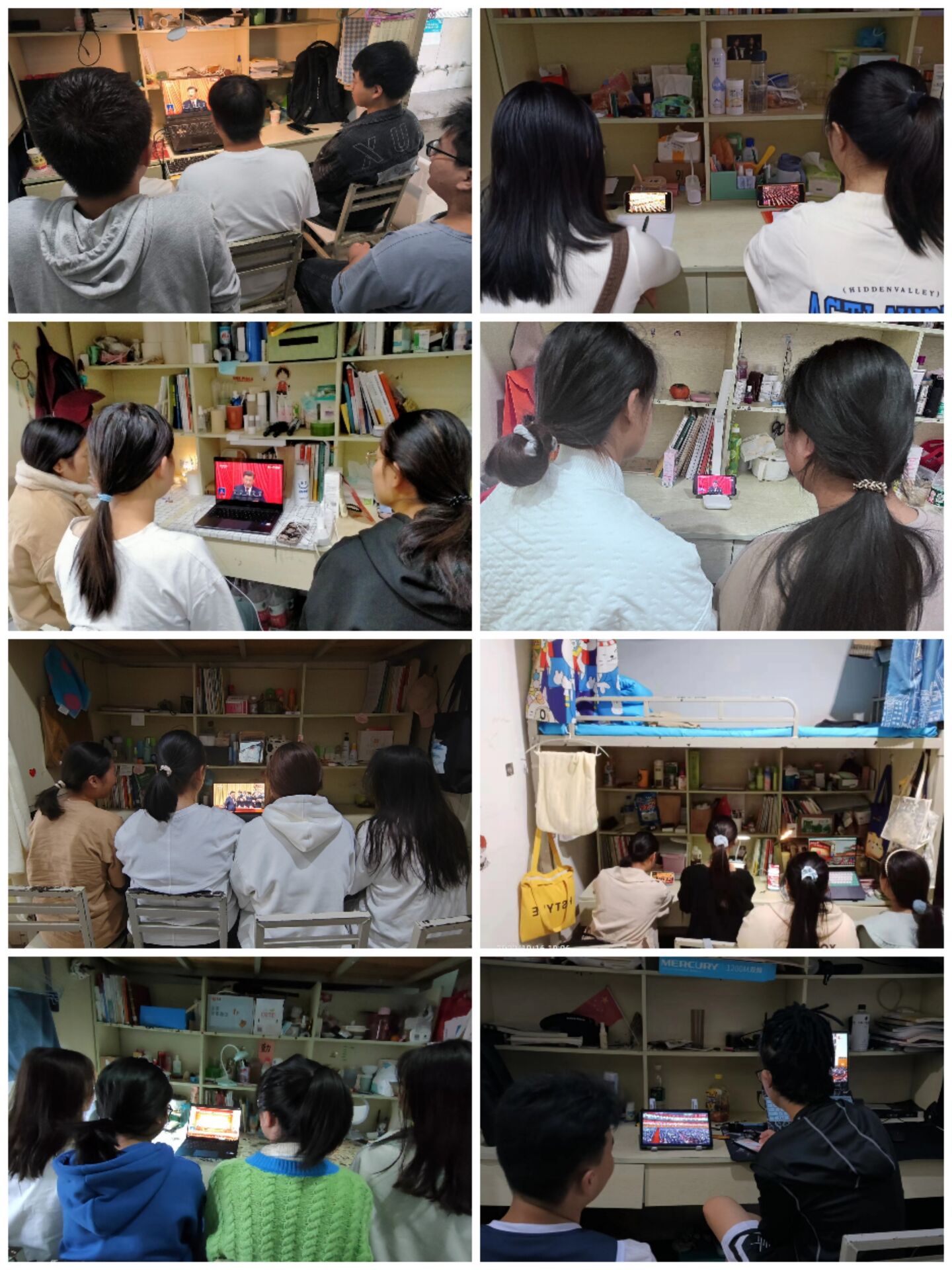 学院入党积极分子、共青团员、全体学生在教室、宿舍通过中央电视台以及人民网、新华网、央视新闻客户端等网站、新媒体平台线上收听收看开幕会直播。