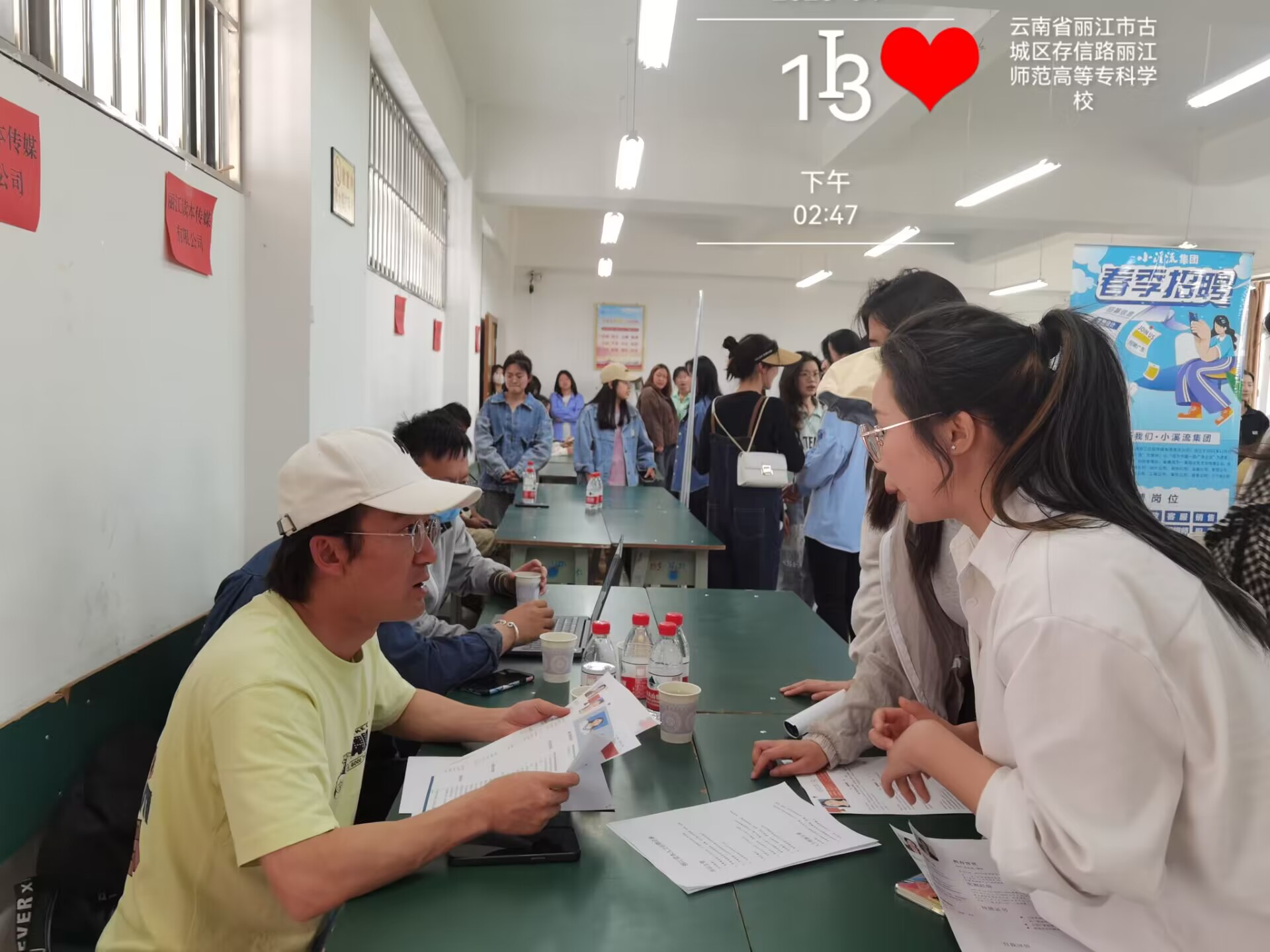 丽江读本传媒有限公司、丽江摆渡人文化传播有限公司、丽江掌上文化传媒有限公司、丽江昕翊文化传媒有限公司、丽江花林居生态农场、丽江润泽高级中学招生办、陌上酒店管理有限公司、小溪流集团有限责任公司、中国移动公司丽江分公司、爱迪尔珠宝、麦甜烘焙等11家企业为学生提供了丰富的职位。用人单位岗位需求涉及教育、新媒体运营、影视后期制作、人力资源、销售等多个专业,提供就业岗位111个。我院新闻采编与制作、现代文秘两个专业的毕业生、2021级学生,兄弟学院学生200余人参加招聘会。