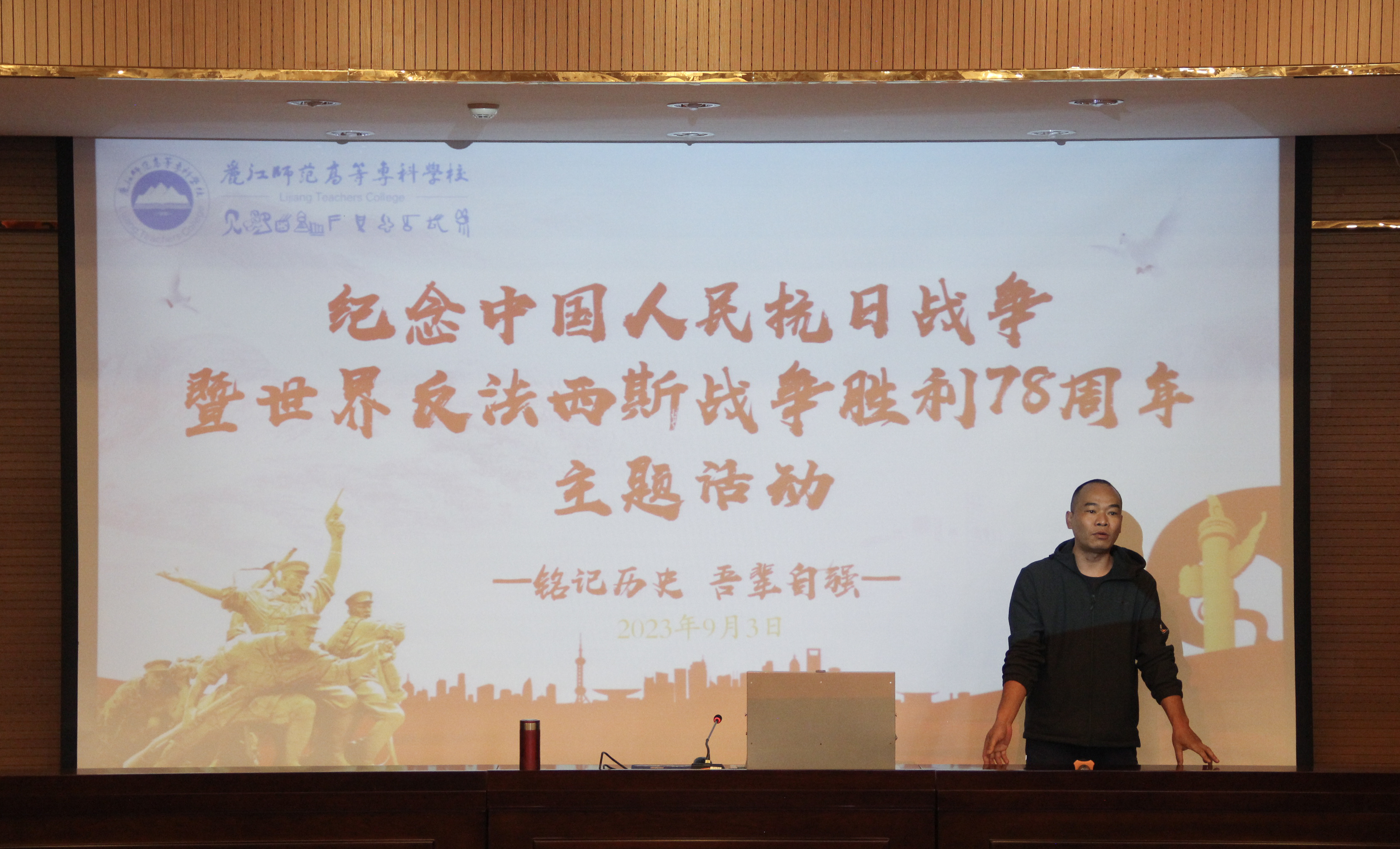 9月3日是中国人民抗日战争胜利纪念日,也是世界反法西斯战争胜利纪念日。为继承和弘扬伟大的抗战精神,加强爱国主义教育,普及抗战历史知识,引导人们铭记历史、缅怀先烈,汲取奋进力量,在抗战胜利纪念日到来之际,由学校党委宣传部主办,文学与传媒学院党总支承办的“铭记历史,吾辈自强——纪念中国人民抗日战争暨世界反法西斯战争胜利78周年”主题活动在求是楼318报告厅举行。主题活动以讲座的形式进行,由文学与传媒学院专职组织员普孝辉主讲,围绕习近平总书记“在纪念中国人民抗日战争暨世界反法西斯战争胜利70周年大会上的讲话、在纪念中国人民抗日战争暨世界反法西斯战争胜利75周年座谈会上的讲话”两次重要讲话进行解读,文学与传媒学院120余名入党积极分子及学生代表参加讲座。