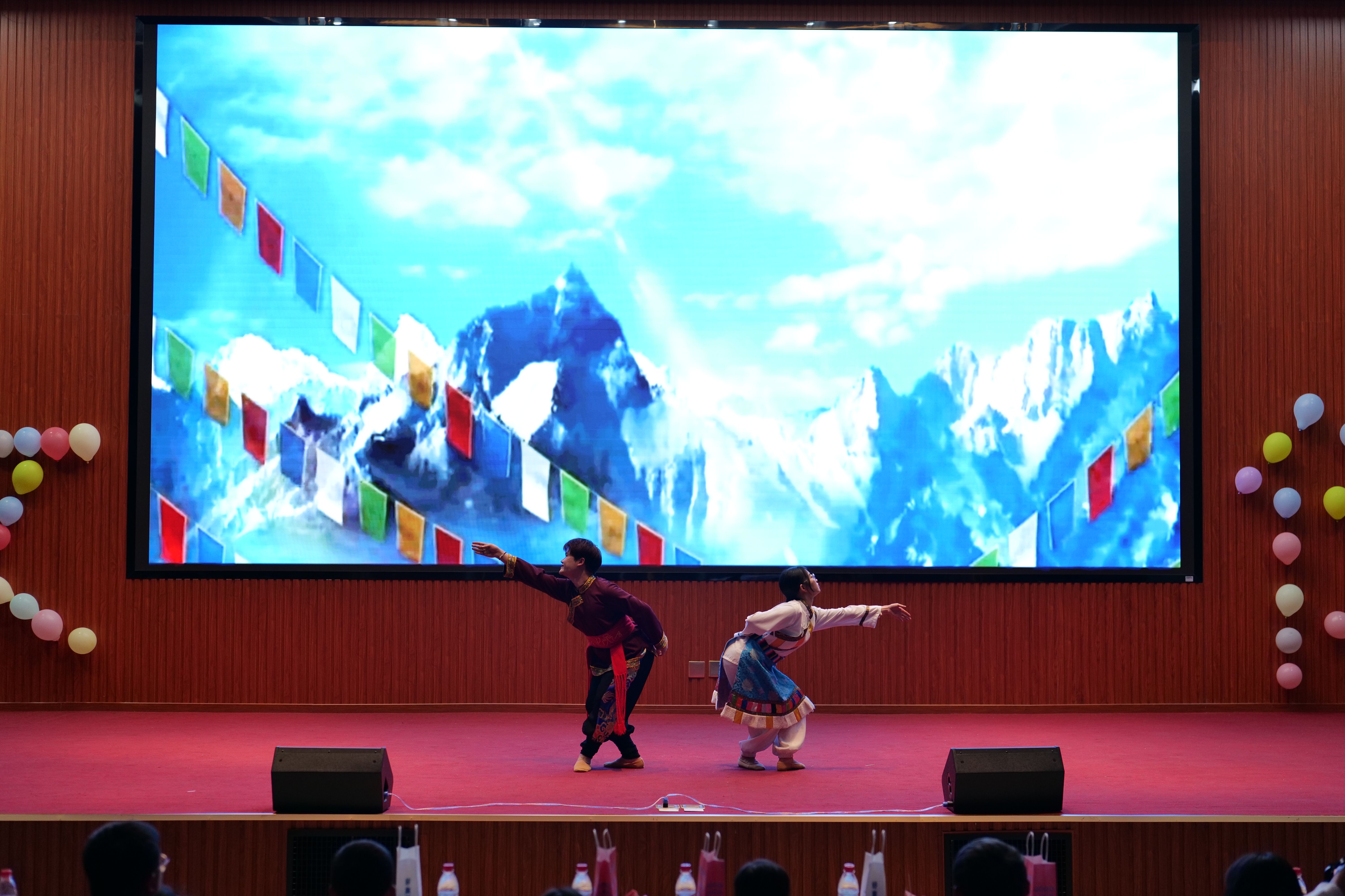 第二篇章“多彩青春,展新颖”将整场晚会推向了高潮。青春无限好、逐梦正当时,小品《四大名著》以一种充满幽默和智慧的形式展现传统文化的精髓。空灵纯净的音乐配上唯美的藏族舞蹈《祷》,让观众们经历一场荡涤心灵之旅。经典童话《雪孩子》回顾童年。展示古代文化魅力的走秀——《绮丽罗裳》,幽默风趣的小品《打劫》等等,现场表演高潮迭出,赢得了观众阵阵掌声。在第三章“壮丽河山,绘新篇”之后,本场晚会落下了帷幕。
