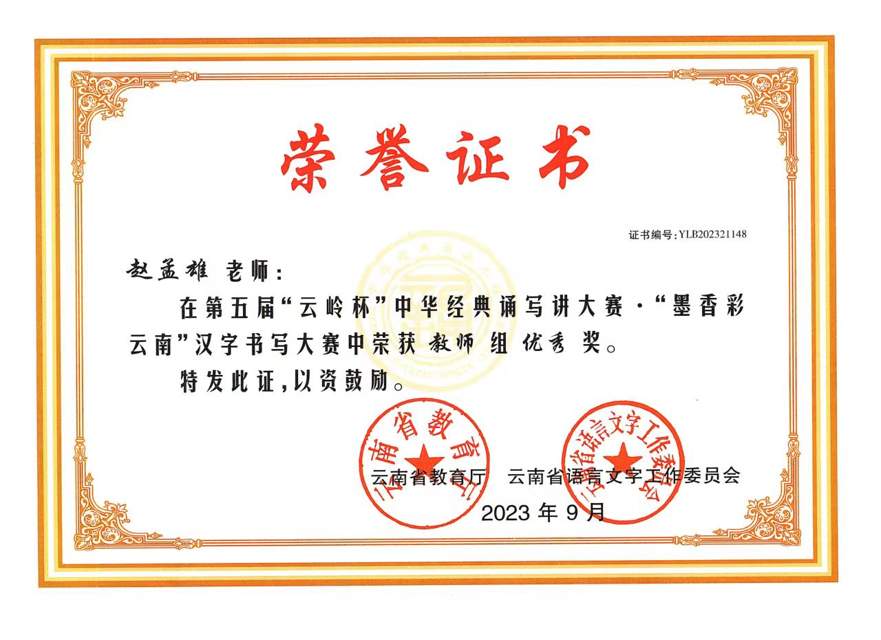 近日,云南省语言文字工作委员会、云南省教育厅印发《关于公布五届“云岭杯”中华经典诵写讲大赛比赛结果的通知》,我院师生获得二等奖2项,三等奖1项,优秀奖7项(含团队参赛奖1项),共计10个奖项,为近年来的最好成绩。
