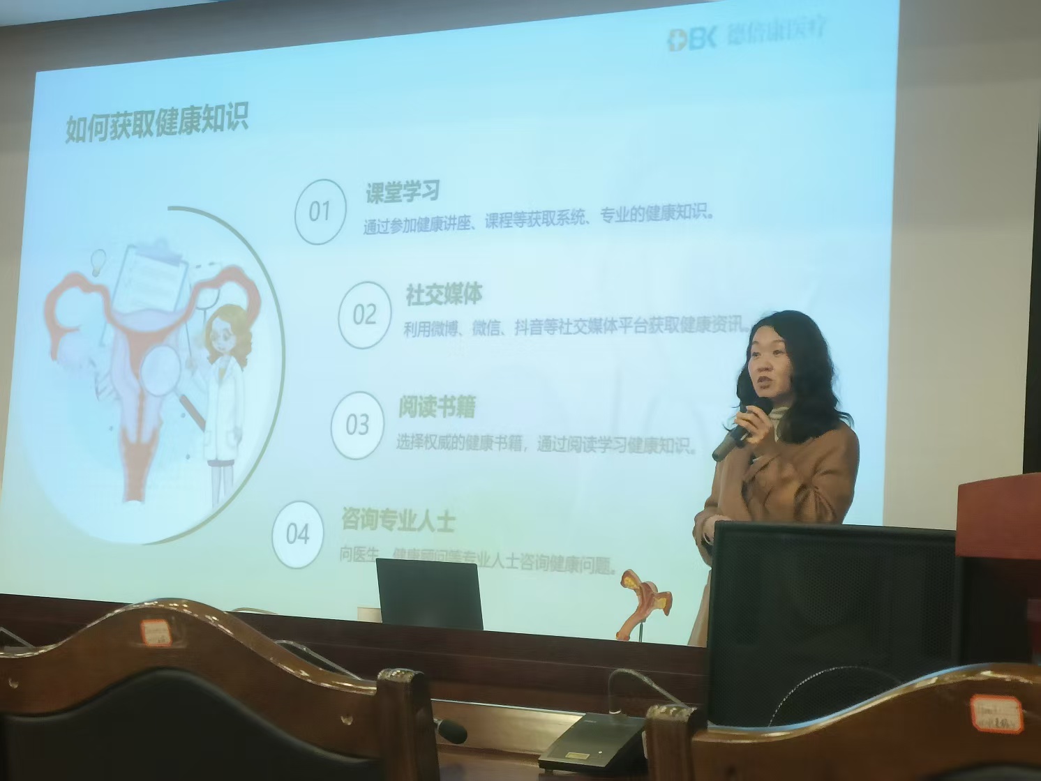 德倍康医院妇科主任季雪主任图文并茂,用通俗易懂的语言,结合典型案例给到场的女大学生们普及了常见病的健康知识,她围绕女性常见疾病的预防和治疗,从专业角度帮助大家走出各种保健误区,树立科学的保健理念。同时,季雪主任鼓励大家在日常生活中要科学饮食、适当参加锻炼,保持良好心态,养成健康的生活习惯,如果身体不适,要及早到医院进行检查治疗。