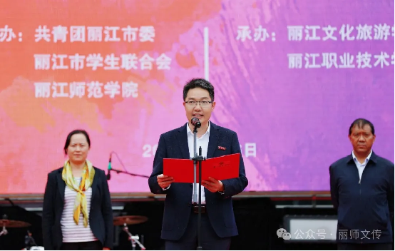 丽江师范学院党委副书记、校长陈本辉致欢迎辞。他代表学校热烈欢迎莅临现场的领导和嘉宾,感谢一直关心和支持丽师的单位及兄弟院校,明确丽江建设教师教育特色鲜明的地方应用型大学的办学目标,表态将为丽江发展贡献丽师力量、书写发展新篇章,期盼各方继续支持丽师发展,并携手办好艺术节并打造丽江高校青年活力名片。随后,他宣布活动正式开幕。