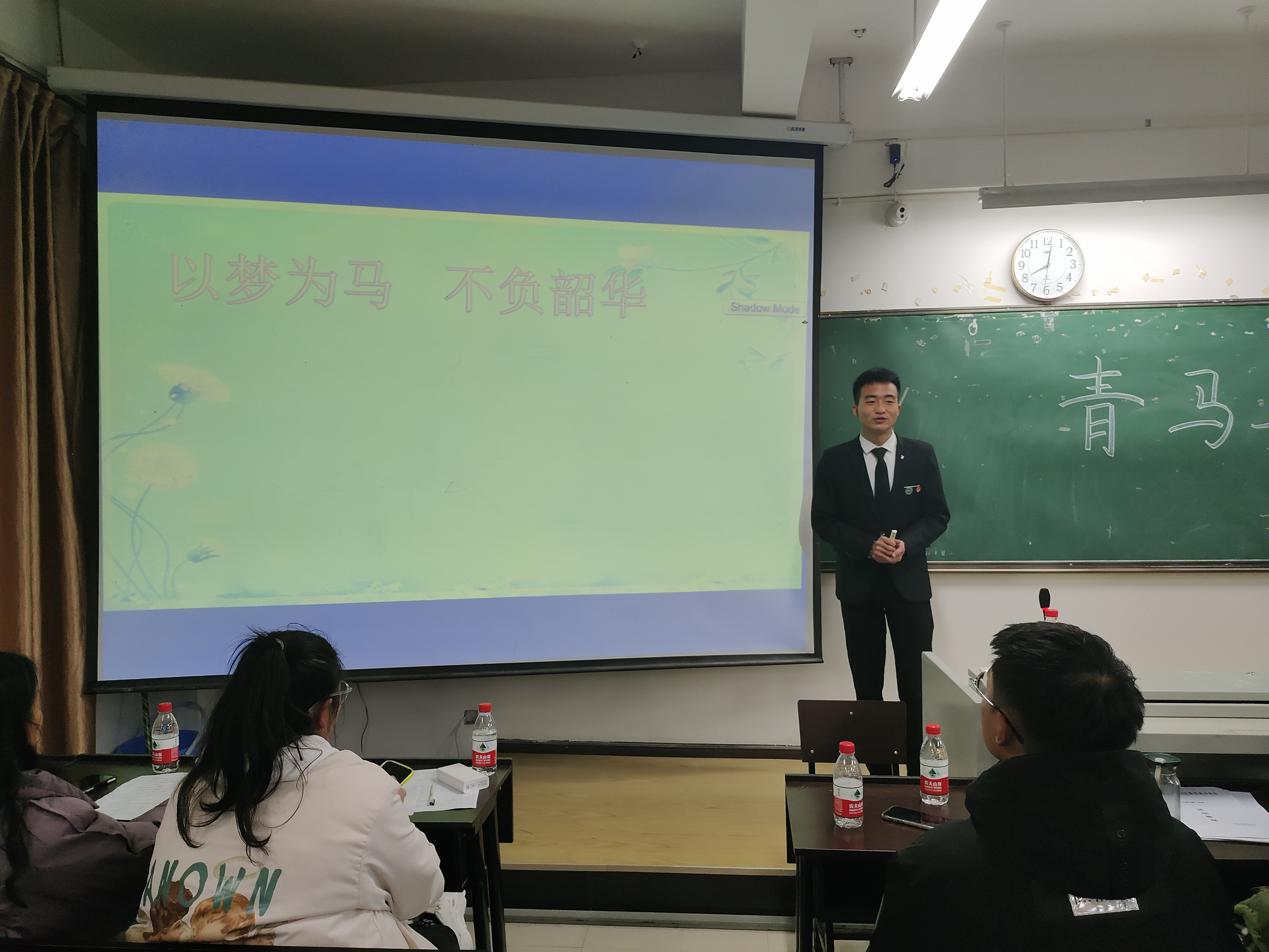 接下来他又接着讲述了,“如何从理论到实践当中去、如何结合自身实际情况让自己走向更美好的未来”等让大家感到疑惑的问题。他告诉我们成为一名合格的青年马克思主义者需要坚持四个自信,也就是理论自信,制度自信,道路自信,文化自信。团学干事不仅要热爱青年马克思主义,还要带动他人热爱并学习马克思主义。最后,赵升云说:“希望同学们做一个青年马克思主义的践行者,以梦为马,不负韶华。”