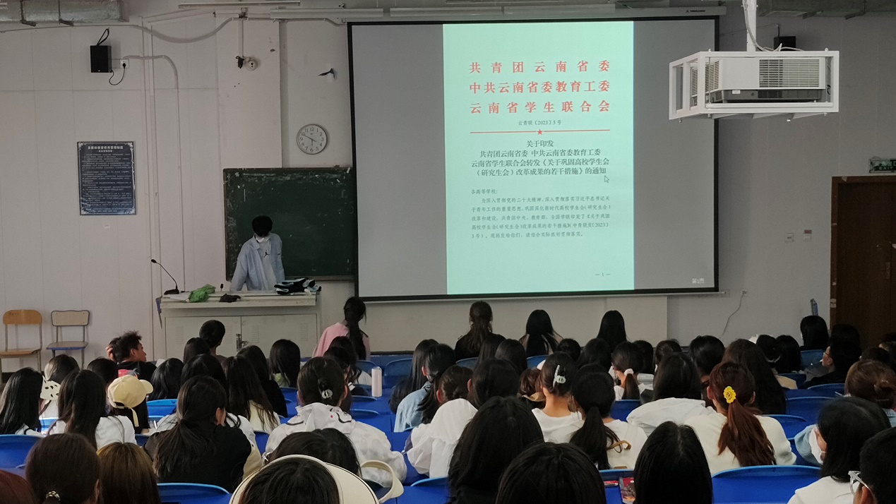 2023年4月17日,文学与传媒学院学生会于博学楼331教室组织学习由共青团云南省委、中共云南省委教育工委、云南省学生联合会转发的《关于巩固高校学生会(研究生会)改革成果的若干措施》,本次学习由我院学生会主席团任晓雷主持,学生会全体成员参与学习。